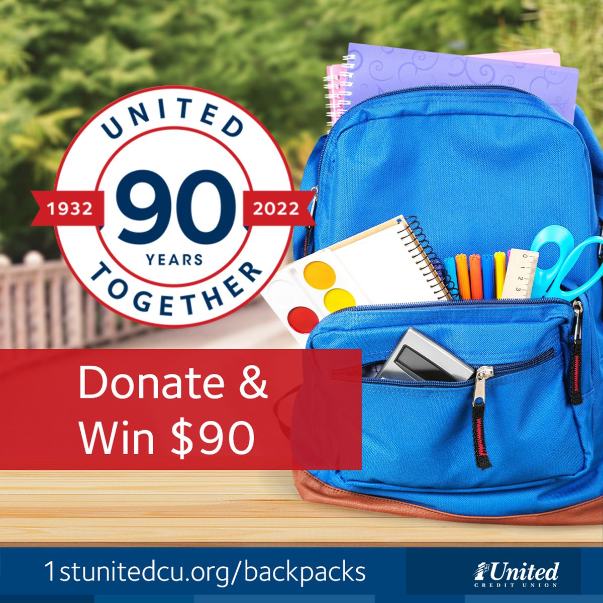 Join 1st United Credit Union as they help generate school supplies in support of Alameda County youth. Help 1st United Credit Union celebrate 90 years of their presence in the community by contributing to their special cause. At 1st United Credit Union, their mission is to ensure you have the products, tools, and resources to achieve your financial goals; part of the credit union difference.