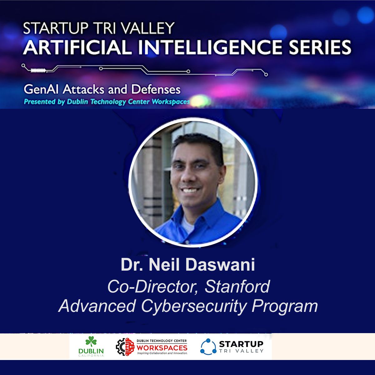 On Wednesday, September 18th from 5:00 - 7:30 pm, Startup Tri-Valley invites you to an exciting and informative event devoted to exploring artificial intelligence and the development of an emerging technology at the Dublin Technology Center, 6200 Village Parkway in Dublin. This event provides an opportunity to learn from experts and will feature panelist speaker Dr. Neil Daswani, Co-Director, Stanford Advanced Cybersecurity Program and President, Daswani Enterprises. Dr. Daswani's presentation will cover recent vulnerabilities, breaches, and abuses of some of the world's most popular Generative AI (GenAI) systems, such as OpenAI and Mistral. This session will offer a broad overview of: major Generative AI vulnerabilities and abuses such as jailbreaks, prompt injections, hallucinations, adversarial examples, and deep fakes; as well as protections and defenses against these vulnerabilities. This event promises to provide a great opportunity to learn about some of the current capabilities and limitations of Generative AI as well as practical steps for enhancing Generative AI security applicable to both consumers and enterprises.