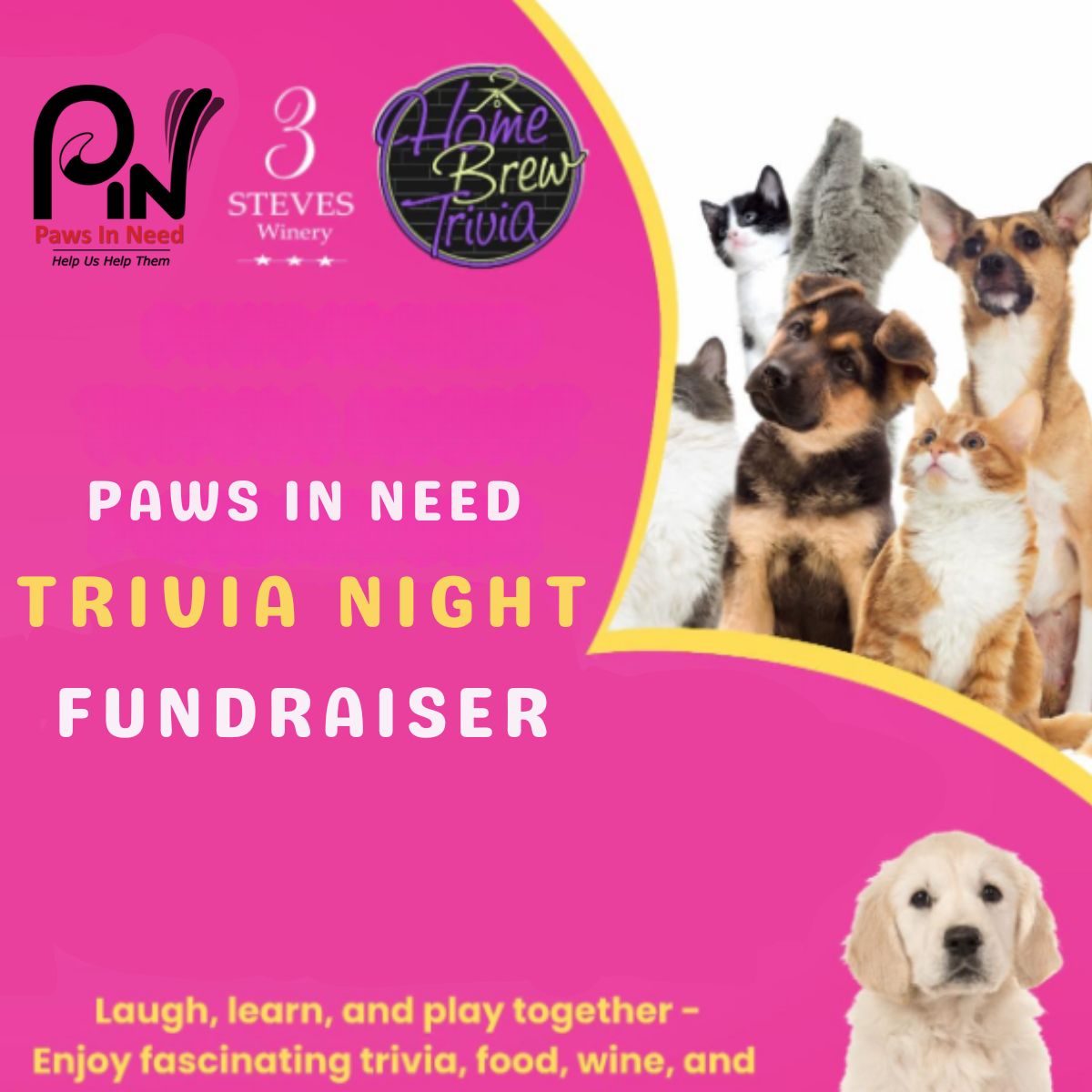 Paws in Need is hosting a Trivia Night fundraiser! Everyone is encouraged to enjoy a fun, engaging and informative event for a good cause. Paws In Need serves the public directly to target the root causes of animal overpopulation and impacted shelters. Programs offered are ran by a small core of dedicated volunteers who are committed to a personalized case management approach by providing resources to reduce animal overpopulation through access to affordable spay and neuter services, and to provide pet owners with cost-share assistance for one-time urgent care procedures.