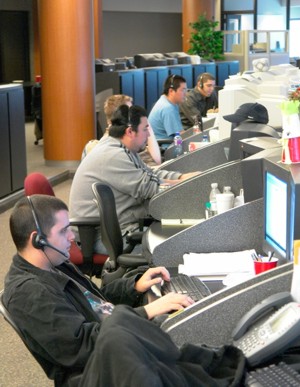 Photo: MegaPath's technical support staff operates from a command center in their Hacienda facility.