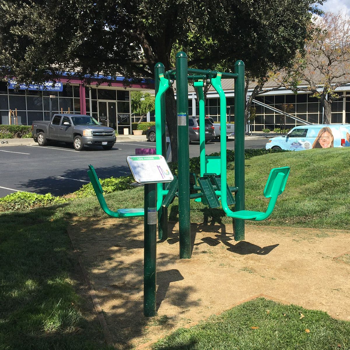 Creekside Park, which is accessible from West Las Positas Boulevard between Owens Drive and Stoneridge Drive, provides a 6.6-acre open lawn for soccer and softball, as well as basketball and volleyball courts, a picnic area, and a play area with swings. Linear Park, a 2.85-acre recreational area, is located north of Creekside Park. Owens Plaza Park, a 3-acre space adjacent to the Park Hacienda apartment complex, provides other play areas, picnic space, and a handsome pergola. Harding Park opened in 2018 at the intersection of Gibraltar Drive and Hacienda Drive. This neighborhood park features two playgrounds. One has equipment for younger children up to five; the other is designed for older children. The park also offers picnic tables, benches, and a small grass area landscaped with shade trees and hardy, native plants. Hacienda’s popular parcourse was updated in 2020. Its equipment includes a back extension machine, a double chest press machine that allows two users to exercise at the same time, an exercise bike, a hip twister installation, a double ski walker machine, strength and stretch bars, a leg press machine that supports three users, push-up bars, a rowing machine, and additional exercise options.